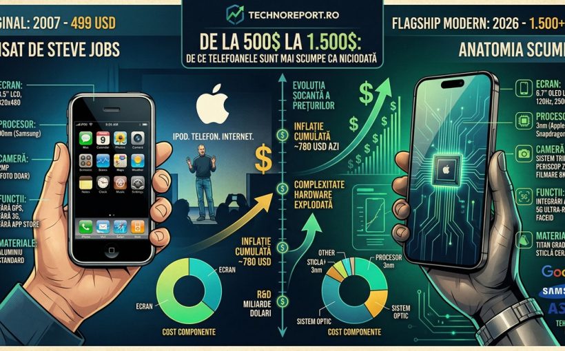 Concluzie Technoreport.ro: Deși tindem să privim cu regret spre prețul de 500 USD al primului iPhone, realitatea tehnică ne spune că dispozitivul de astăzi este de mii de ori mai puternic, mai rezistent și mai versatil. Plătim mai mult pentru că smartphone-ul a absorbit funcțiile camerei foto, ale laptopului, ale consolei de jocuri și ale portofelului, devenind obiectul central al existenței noastre digitale.