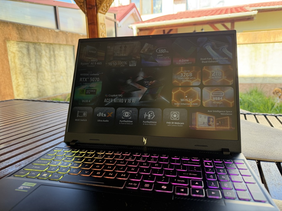 Deși este vândut ca un laptop de gaming, la noi acest Nitro V16 a trecut printr-o „reconversie profesională”. L-am folosit mai puțin pentru a aduna „frag-uri” în Counter-Strike și mai mult pentru a exporta fișiere 4K și pentru a gestiona fluxuri de lucru complexe pentru o companie parteneră.